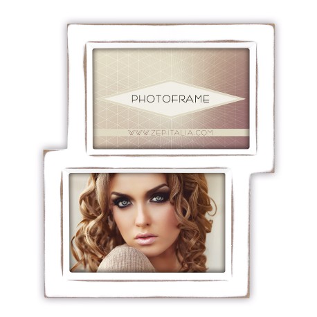 Marco de madera blanco KEPLER, color blanco vintage, multifoto de mesa o pared para 2 fotos, apto para el hogar y la oficina.